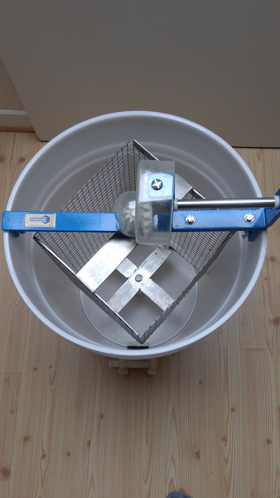 Thorne tangential 4 frames honey extractor in very good condition. The B.S. type will accommodate four B.S. shallow or two B.S. deep frames. £175 (Brand new price on Thorne’s website is £361).Height: 660mm, Width: 405mm